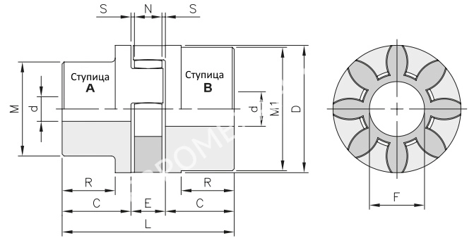 Диаметр ступицы, М1, мм